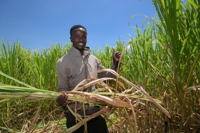 2025年10月14日,在肯尼亚西部纳库鲁郡,工人在菌草种植园内收割菌草。新华社记者 杨光 摄